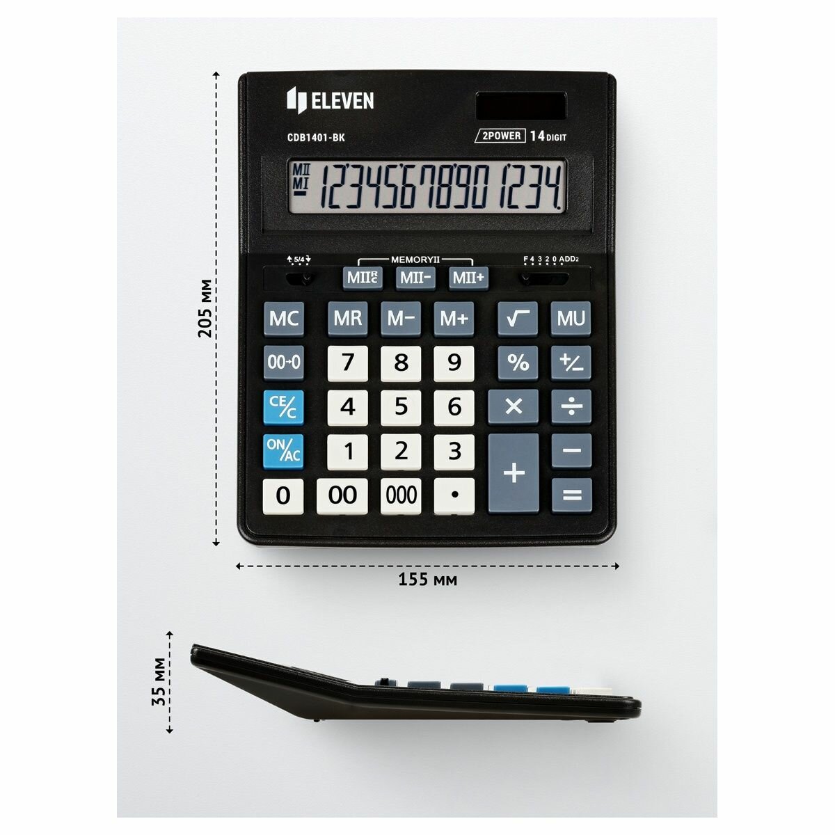 Калькулятор Eleven "Business Line", настольный, 14 разрядов, двойное питание, 155х205х35 мм, черный (CDB1401-BK) информация: