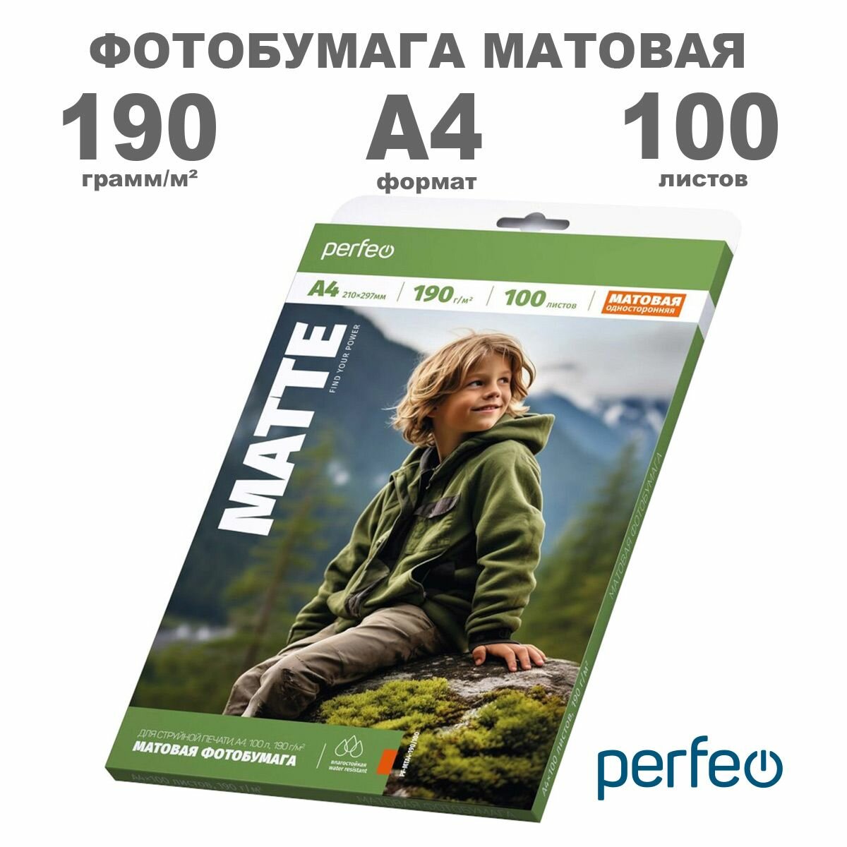 Фотобумага А4 матовая 190 г/м2 100 листов Perfeo / Фотобумага A4 для принтера, для струйной печати информация: