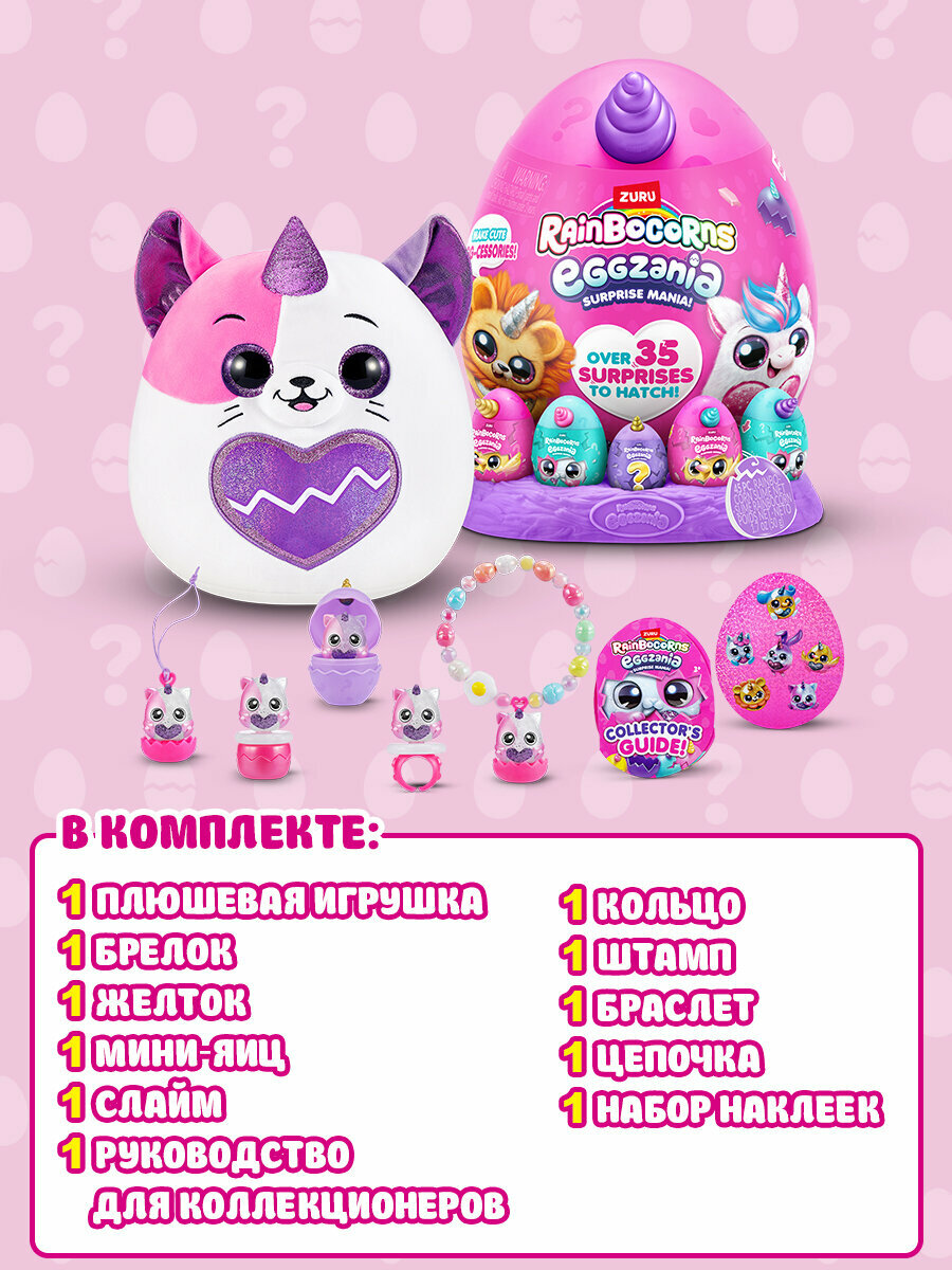Игрушка-сюрприз ZURU RAINBOCORNS Eggzania Surprise Mania, Эггазния с мягкой игрушкой, игрушки для девочек, 9258 информация: