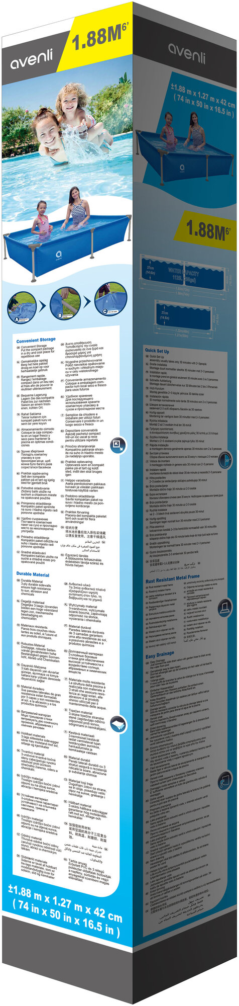 Бассейн каркасный прямоугольный 188 х 127 х 42 см Avenli (17803), 1125 л информация: