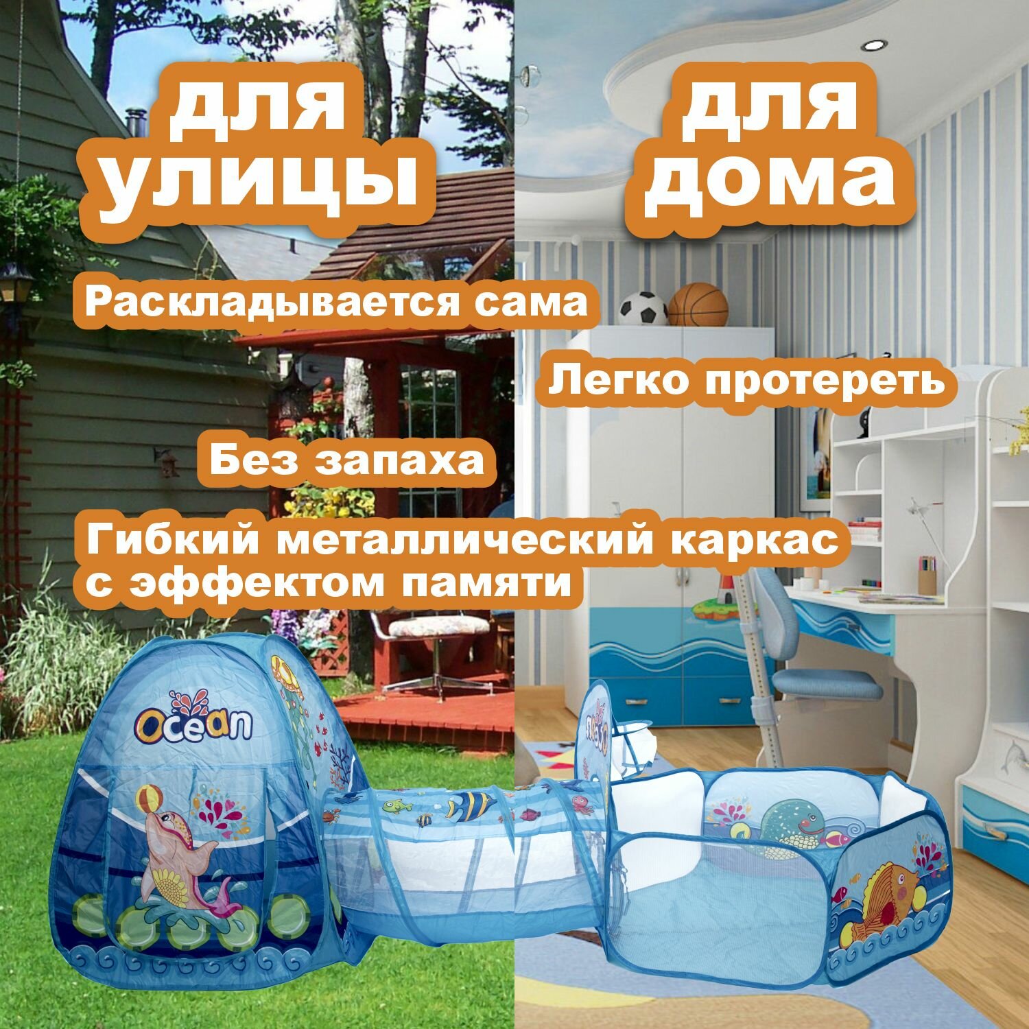10 цен на Палатка детская игровая 3 в 1 Игрокат Рури XL, тоннель и манеж, Подводное царство, вигвам детский