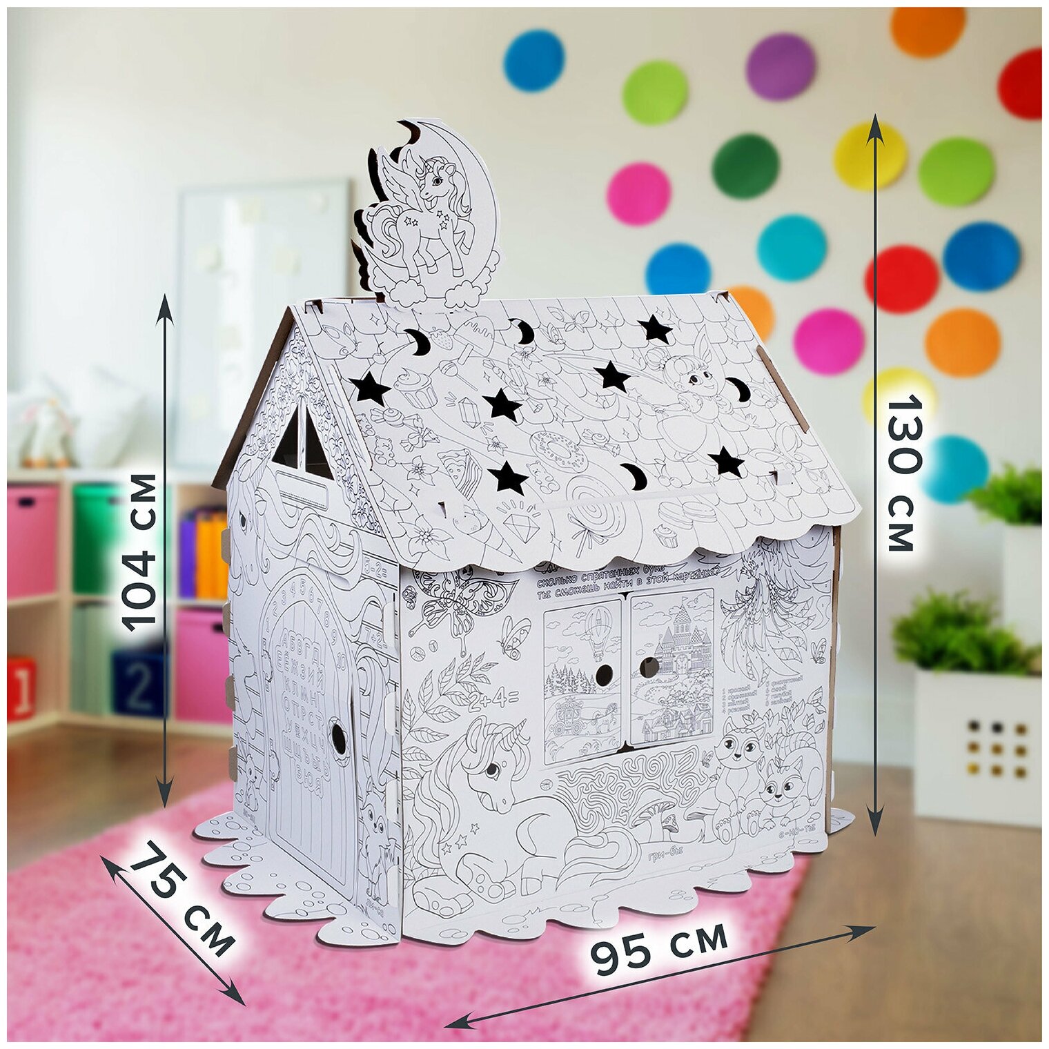 Картонный игровой развивающий Домик-раскраска "Для маленькой принцессы" высота 130 см, BRAUBERG KIDS, 880363, в комплекте 1шт