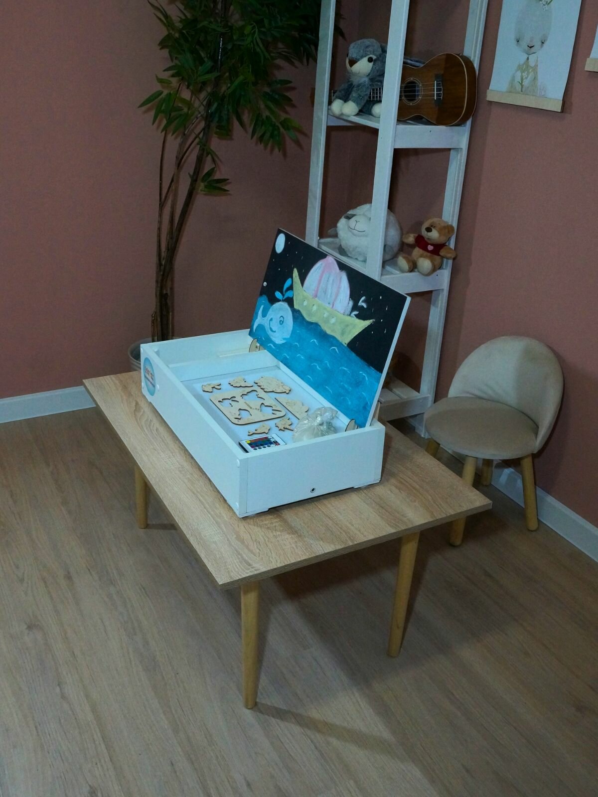 | Комплектация | ✔ световой планшет "Уникум" 60*30 ✔ крышка-столешница с грифельной стороной "Рисуй мелом" ✔ 500 г кварцевого песка ✔ блок питания ✔ пульт ✔ инструкция ✔ настольный вариант без ножек (можно присоединить) В ПОДАРОК: ✔ набор авторских гребней: 4 гребня и ровнитель-кораблик (можно разукрасить акриловыми красками, карандашами или фломастерами) ✔4 рамки с трафаретами и гравировкой "Жители джунглей" (можно разукрасить акриловыми красками, карандашами или фломастерами) ✔ комплект фиксаторов "Мольберт" для крышки ✔ ссылка на страничку сайта, где можно скачать самые лучшие издания по песочной терапии и нашу подборку видеоуроков |