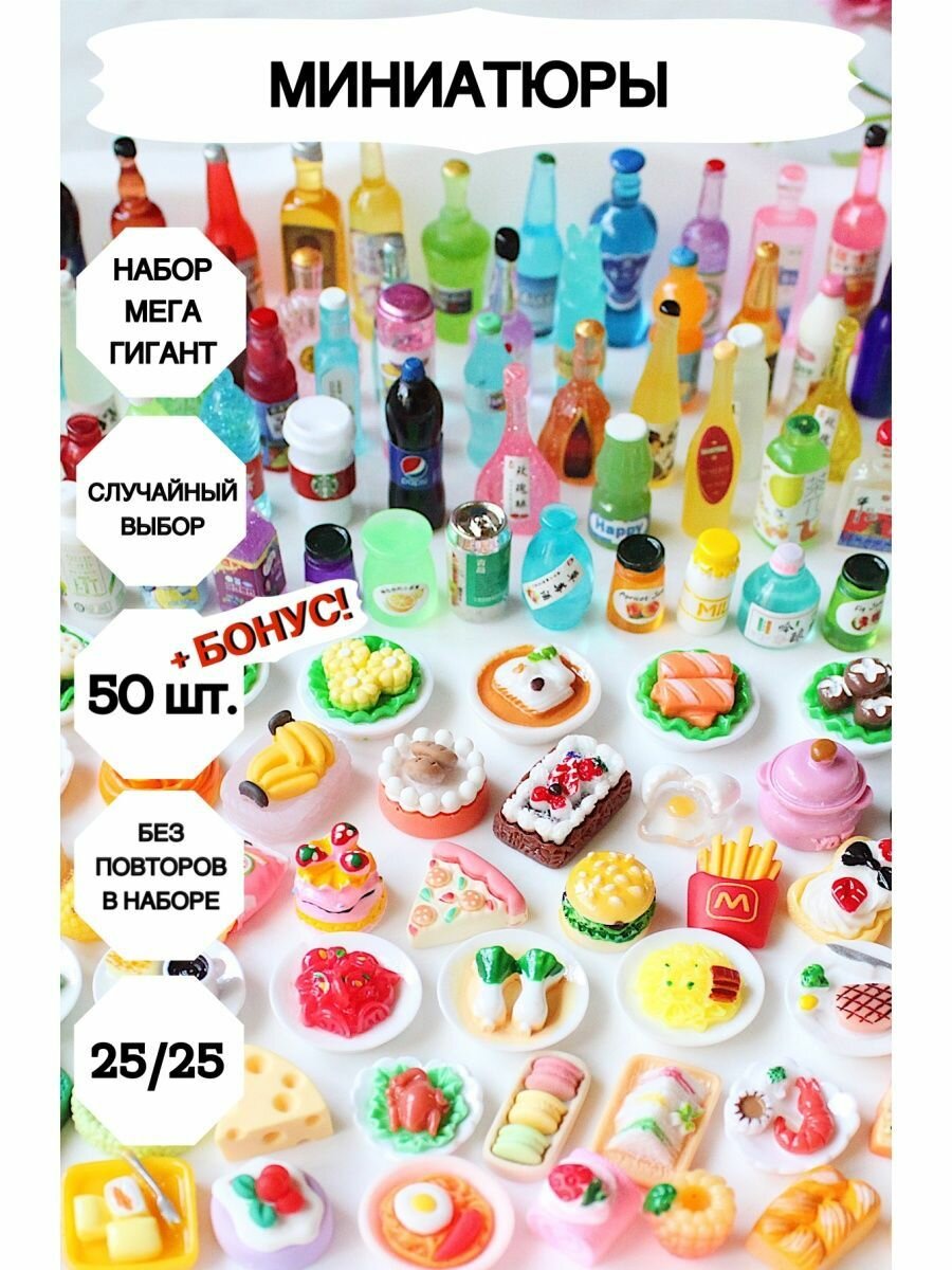 Еда для барби, большой набор 50 штук, Миниатюра_50_еды 1 100 ₽