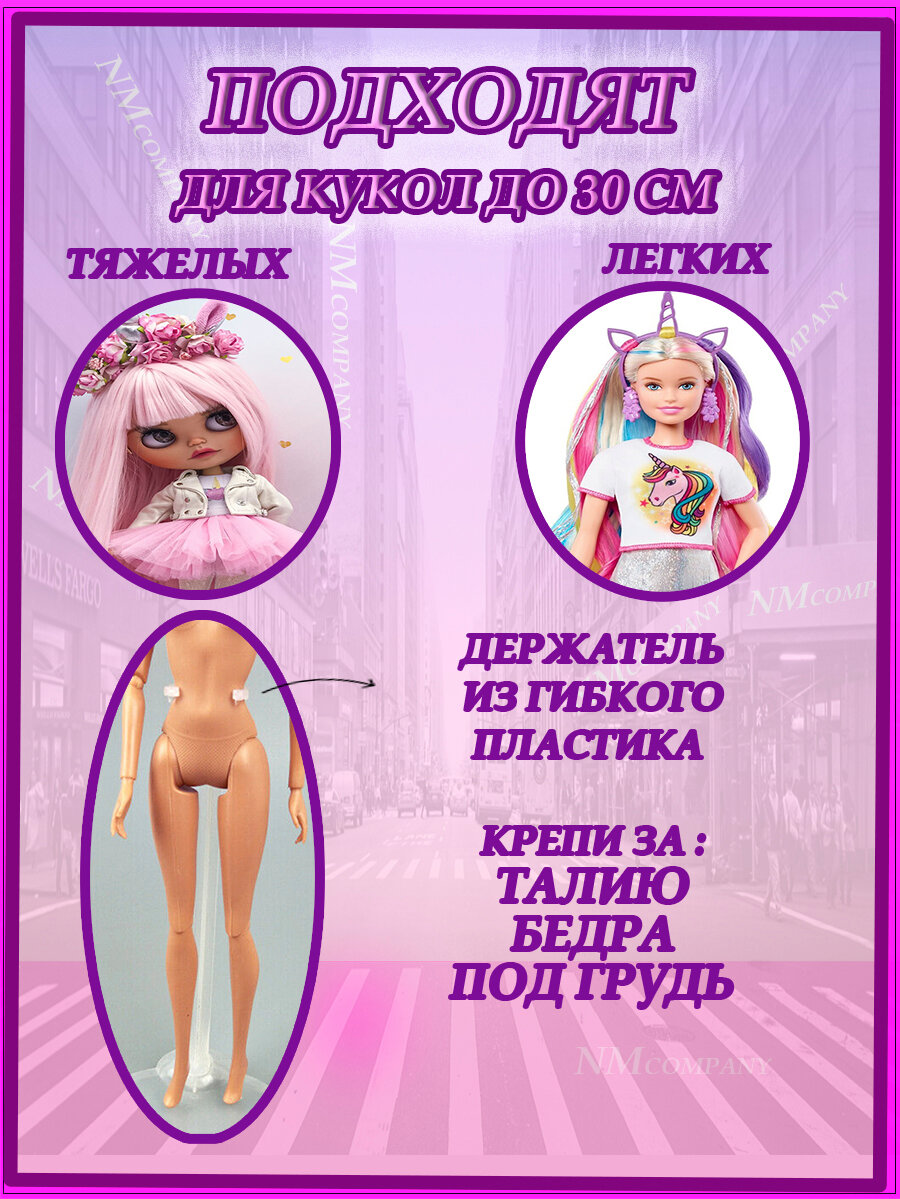 Подставка-держатель для куклы, для кукол до 30см, 5 штук, фиолетовая 349 ₽