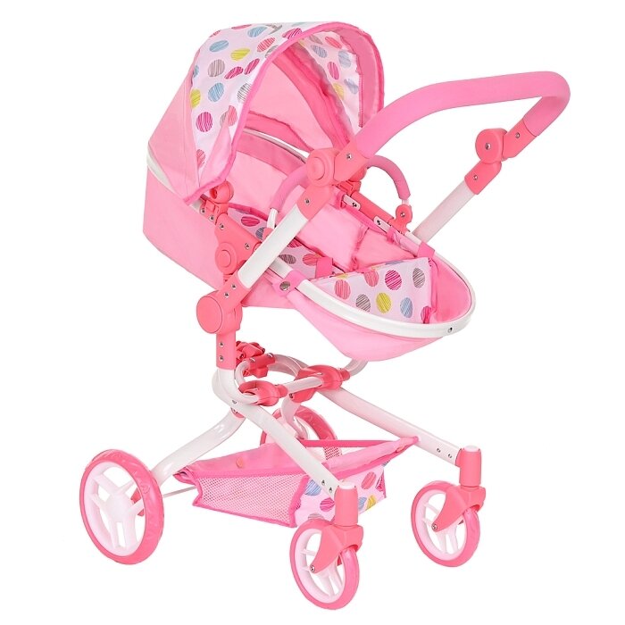 10 цен на Коляска-трансформер для кукол Melobo розовая с белой отделкой в горошек, 9695 цветN4