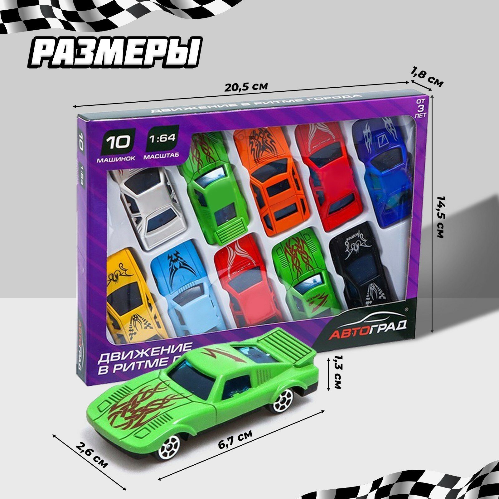Машина "Супергонщик" набор 10 шт, из пластика, масштаб 1:64, для мальчиков информация: