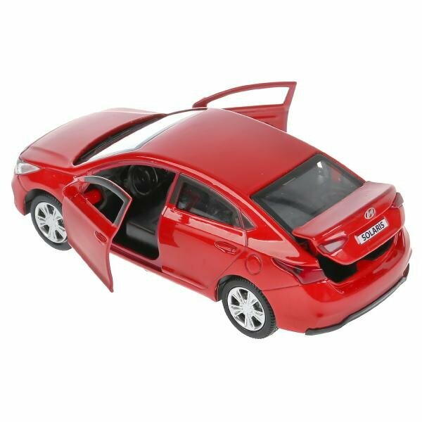 Машинка детская Hyundai Solaris 12 см, Технопарк, красная, двери и багажник открываются, металлический корпус