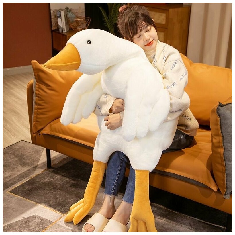 Мягкая игрушка-антистресс Гусь-обнимашка, гусь-обнимусь белый, 90 см
