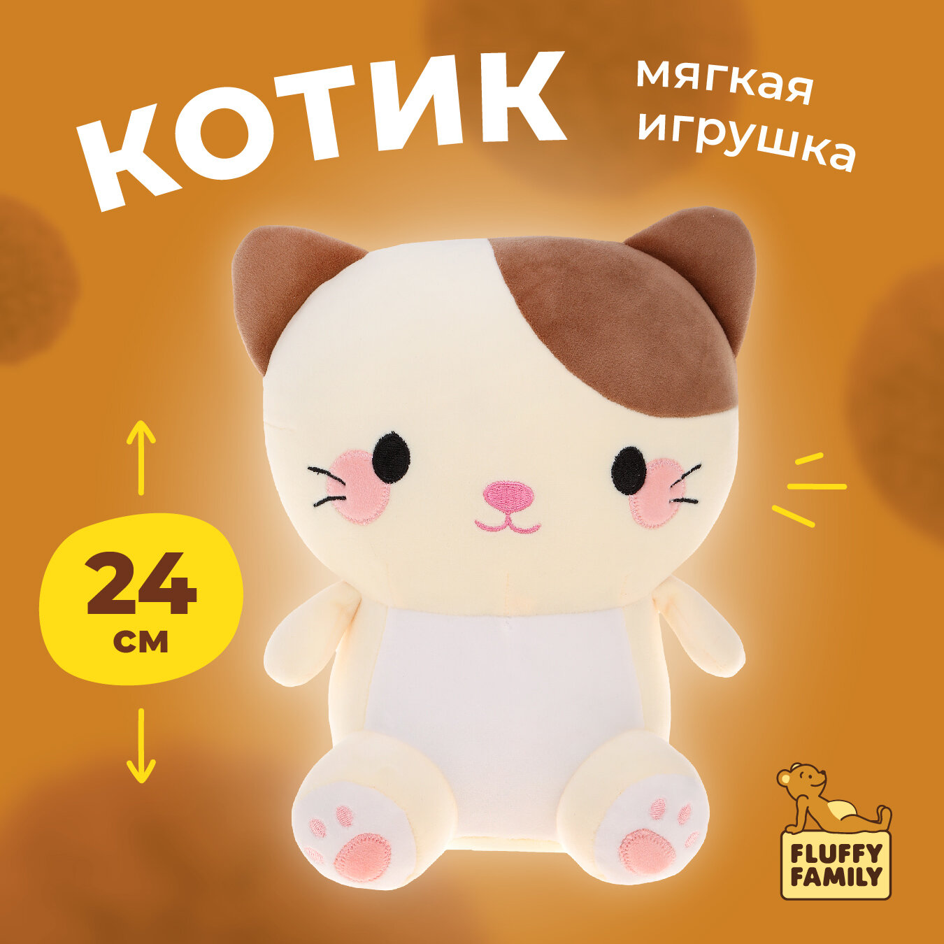 10 цен на Мягкая игрушка Fluffy Family "Котик" , текстиль, синтепон, искусственный латекс, 24см