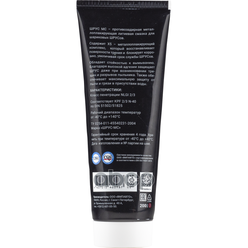 Смазка Шрус (200г), Туба Вмпавто 1804 ВМПАВТО арт. 1804 информация: