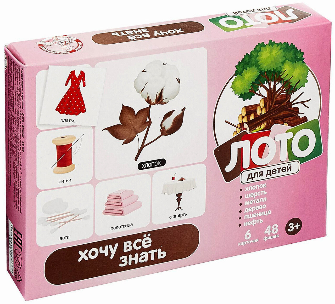 Детское лото с картинками "Хочу все знать" малое, настольная развивающая игра для детей, 48 фишек + 6 тематических карточек информация: