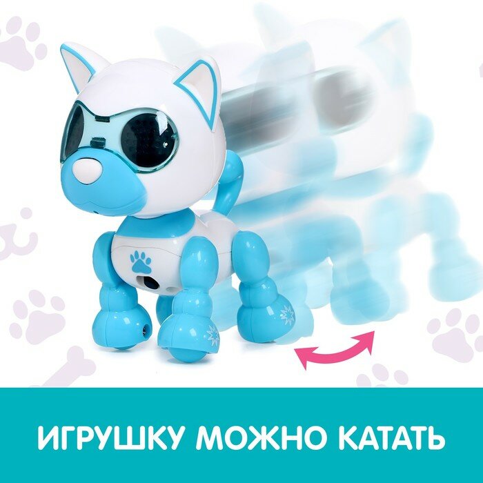Робот собака «Умный дружок», интерактивный: с записью звуков, свет, звук, сенсорный, музыкальный, на батарейках, голубой, 5034634 информация: