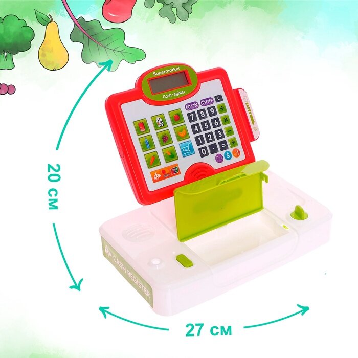 | Комплектация | касса / сканер / корзина / набор овощей (7 штук) / бумажные деньги / монеты / кредитная карта |