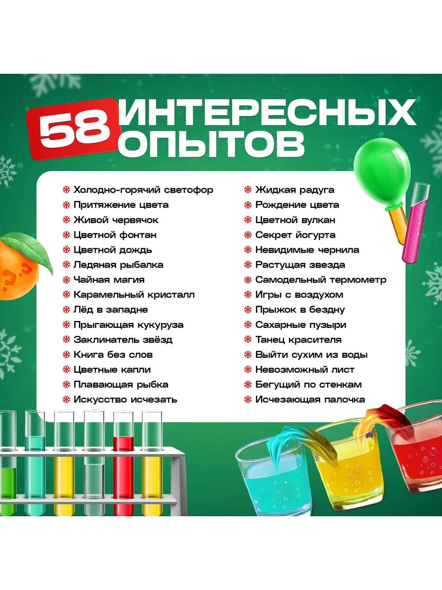 Опыты для детей Новогодние Чудеса с колбами 58опытов информация: