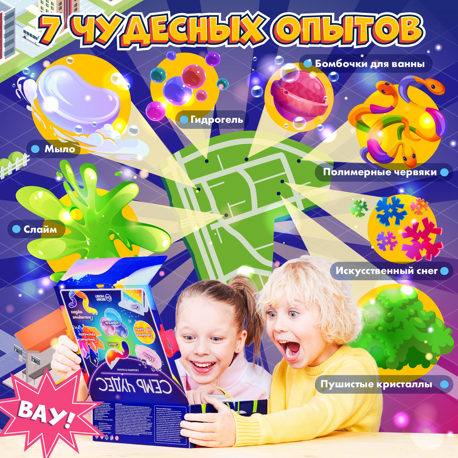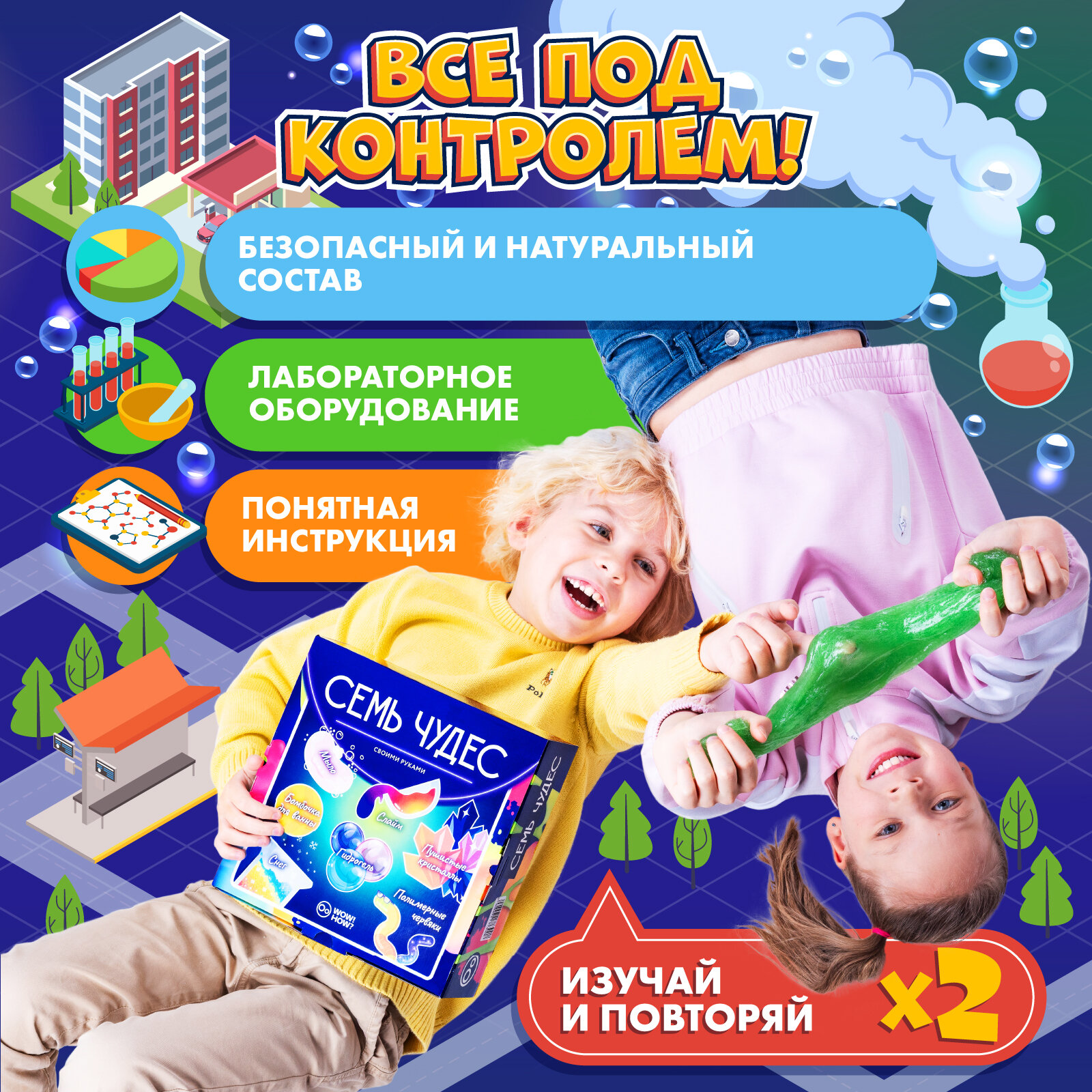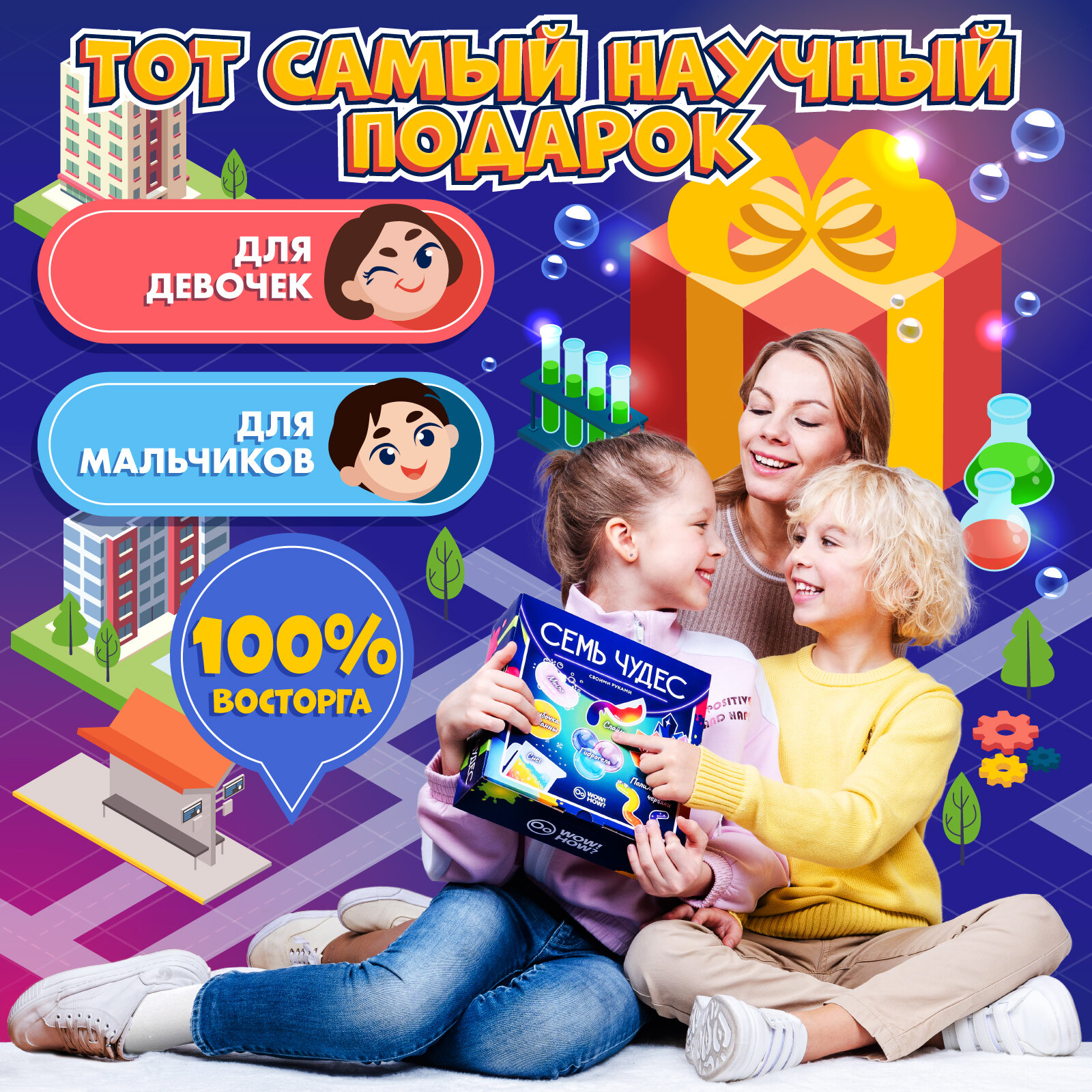 Набор опытов и химических экспериментов для детей WOW! HOW? Семь чудес науки. Поделки в подарок для девочки, мальчика от 6 лет и 8 лет. Юный химик информация: