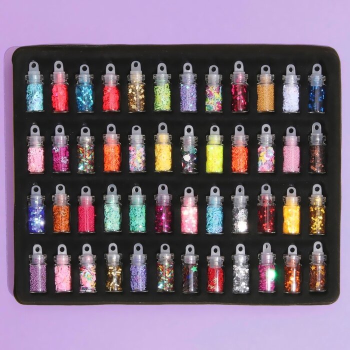 10 цен на Набор для декора, в пластиковом органайзере, набор 48 бутылочек, разноцветные