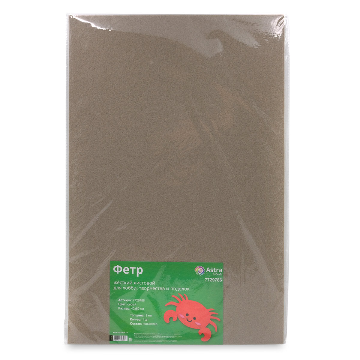 Фетр жесткий листовой Astra&Craft, 3 мм, 40х60 см (AF892/YF621 графит) информация: