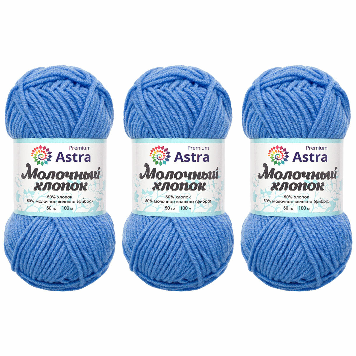 10 цен на Пряжа Astra Premium "Milk Cotton", 50 г, 100 м, 50% хлопок, 50% молочный акрил, цвет 86 голубой, 3 мотка