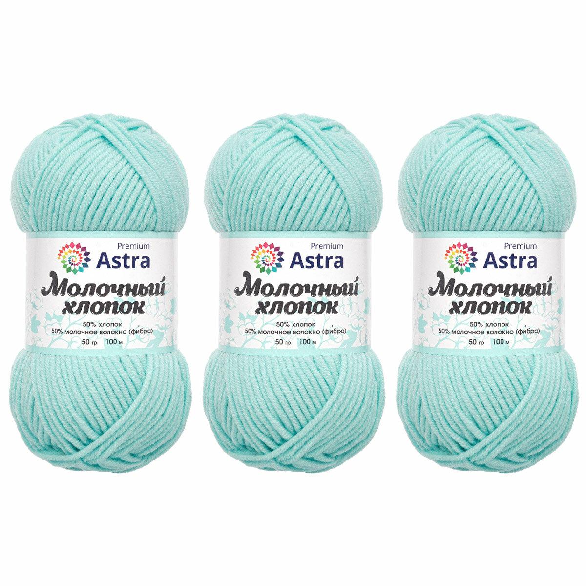 Пряжа Astra Premium 'Молочный хлопок' (Milk Cotton), 50 г, 100 м (+/-5%) (50% хлопок, 50% молочный акрил), 3 мотка