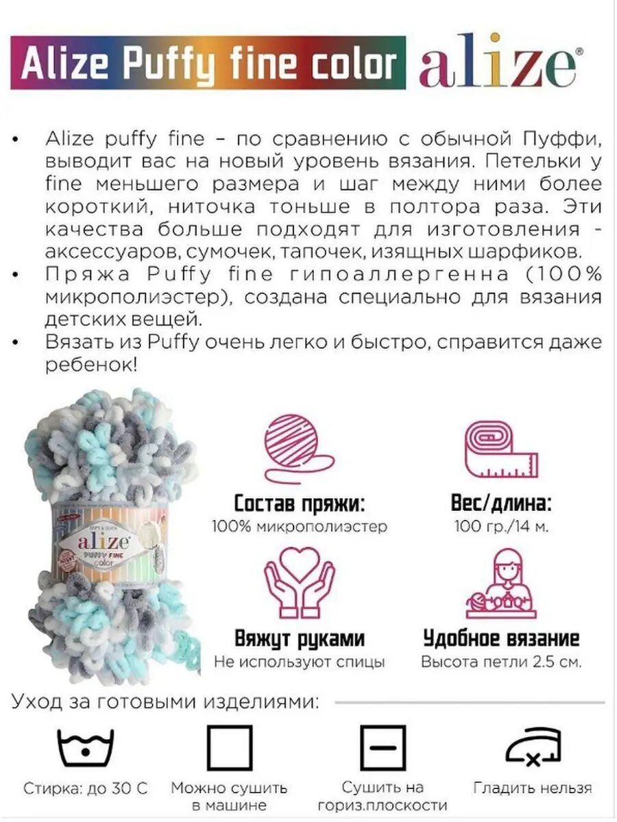 0 отзывов, средняя оценка 0. Чтобы купить «Пряжа Ализе Пуффи Alize Puffy Fine Color 6402 - 5 шт» по лучшей цене мы сканируем авито, алиэкспресс, маркет, озон, савеловский, плеер, горбушку, беру, официальные сайты и находим минимальную. Администрация не несет ответсвенность актуальность цен на Пряжа Ализе Пуффи Alize Puffy Fine Color 6402 - 5 шт, более подробно узнавайте на сайте магазина.