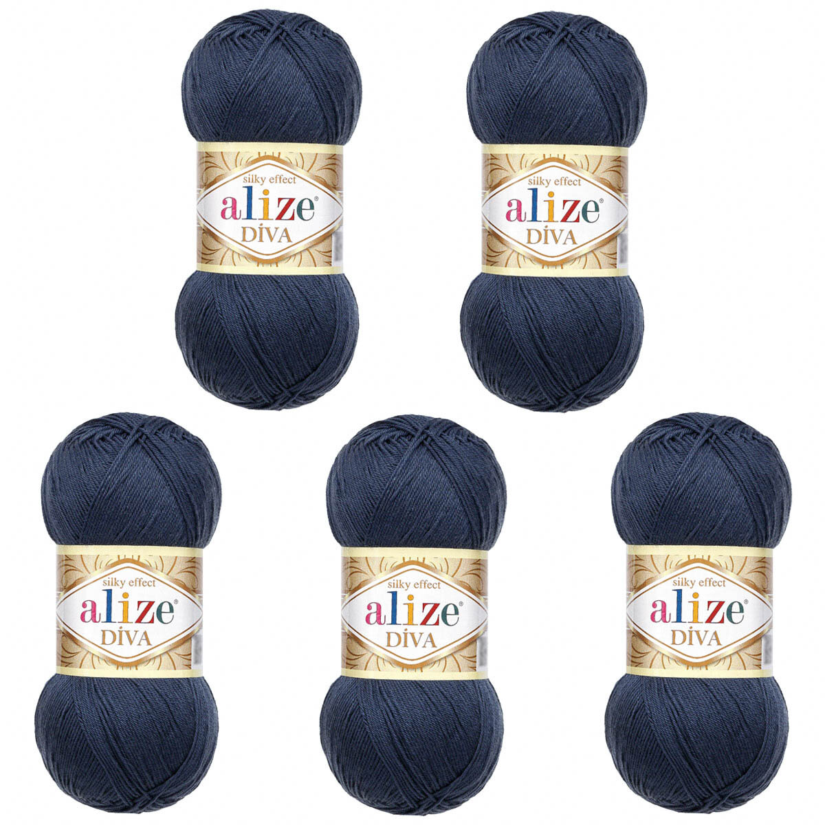 10 цен на Пряжа ALIZE "Diva", 100 г, 350 м, 100% микрофибра, цвет 361 темно-синий, 5 мотков