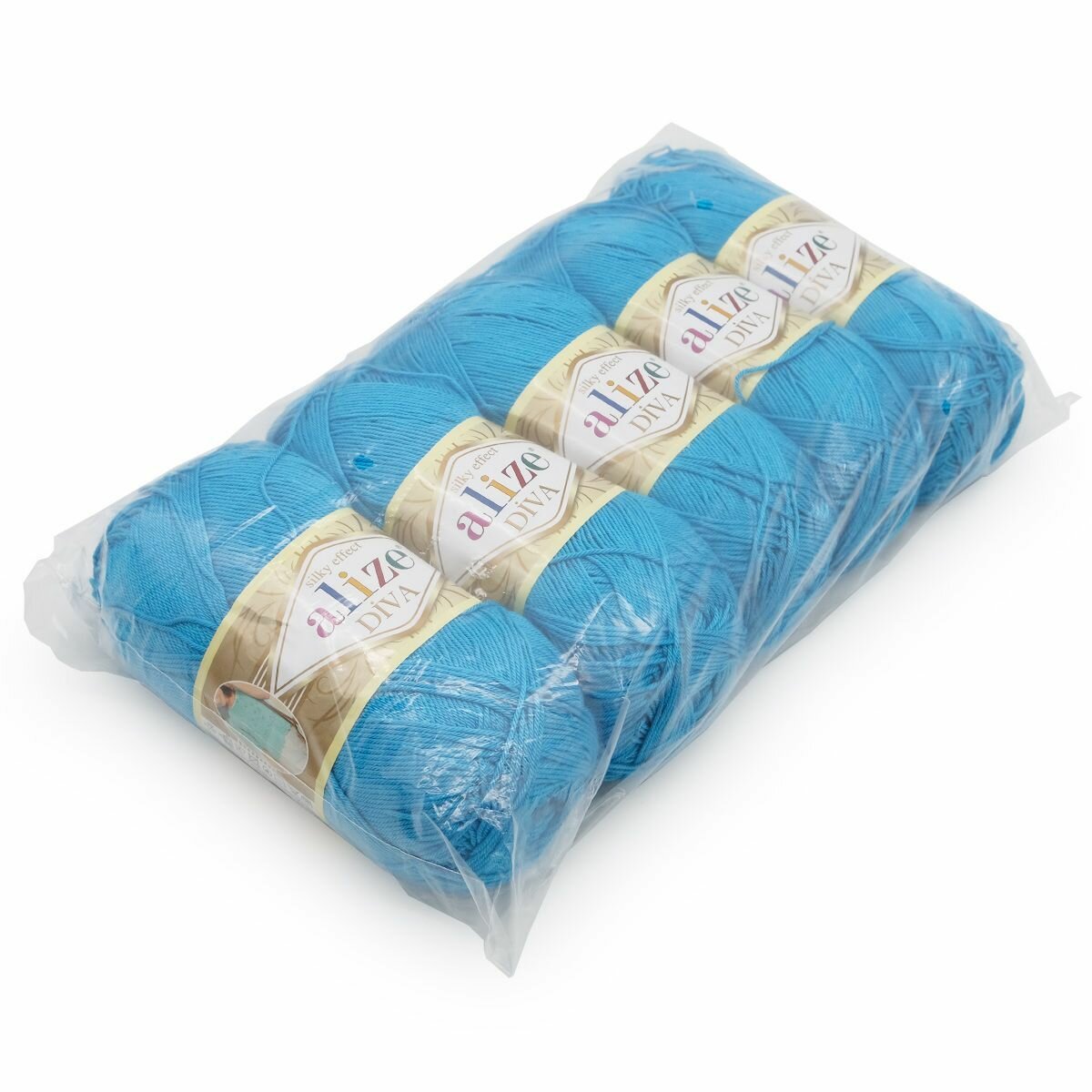 10 цен на Пряжа DIVA FINE ALIZE, голубая бирюза - 245, 100% микрофибра акрил, 5 мотков, 100 г, 600 м.