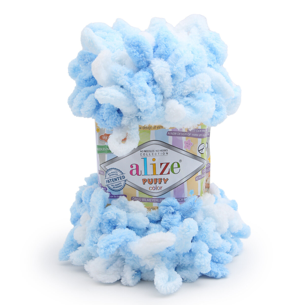 Пряжа PUFFY COLOR (Alize), бело-голубой - 5865, 100% микрополиэстер, 5 мотков, 100 г, 9 м. информация:
