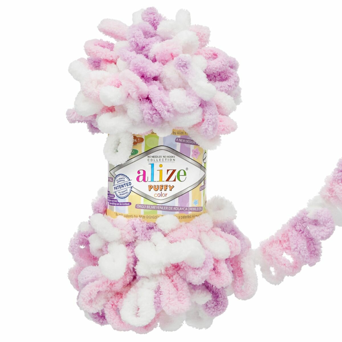Отзывы на Пряжа PUFFY COLOR (Alize), сирен/роз/бел - 6051, 100% микрополиэстер, 5 мотков, 100 г, 9 м.