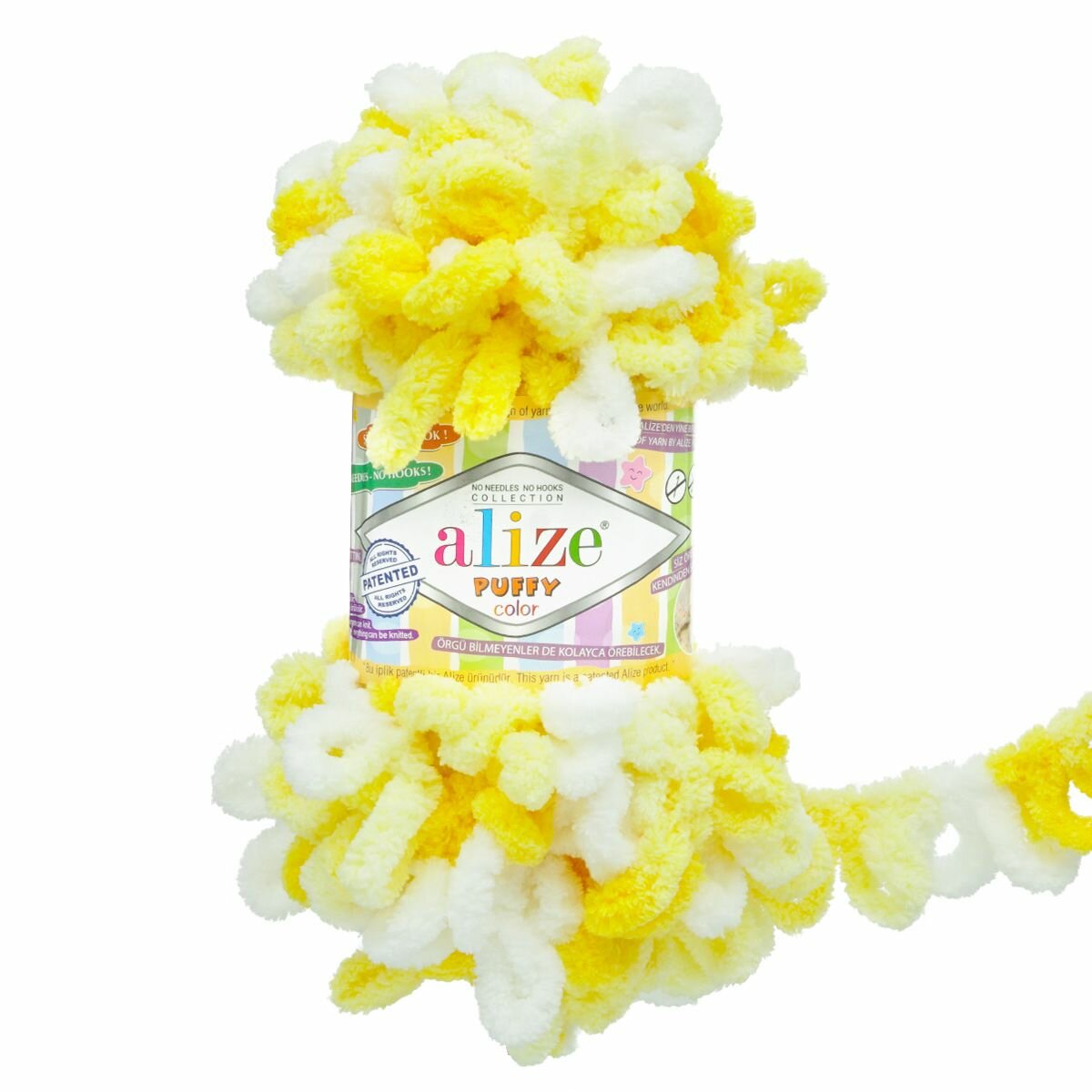 Пряжа PUFFY COLOR (Alize), канарейка принт - 5921, 100% микрополиэстер, 5 мотков, 100 г., 9 м.