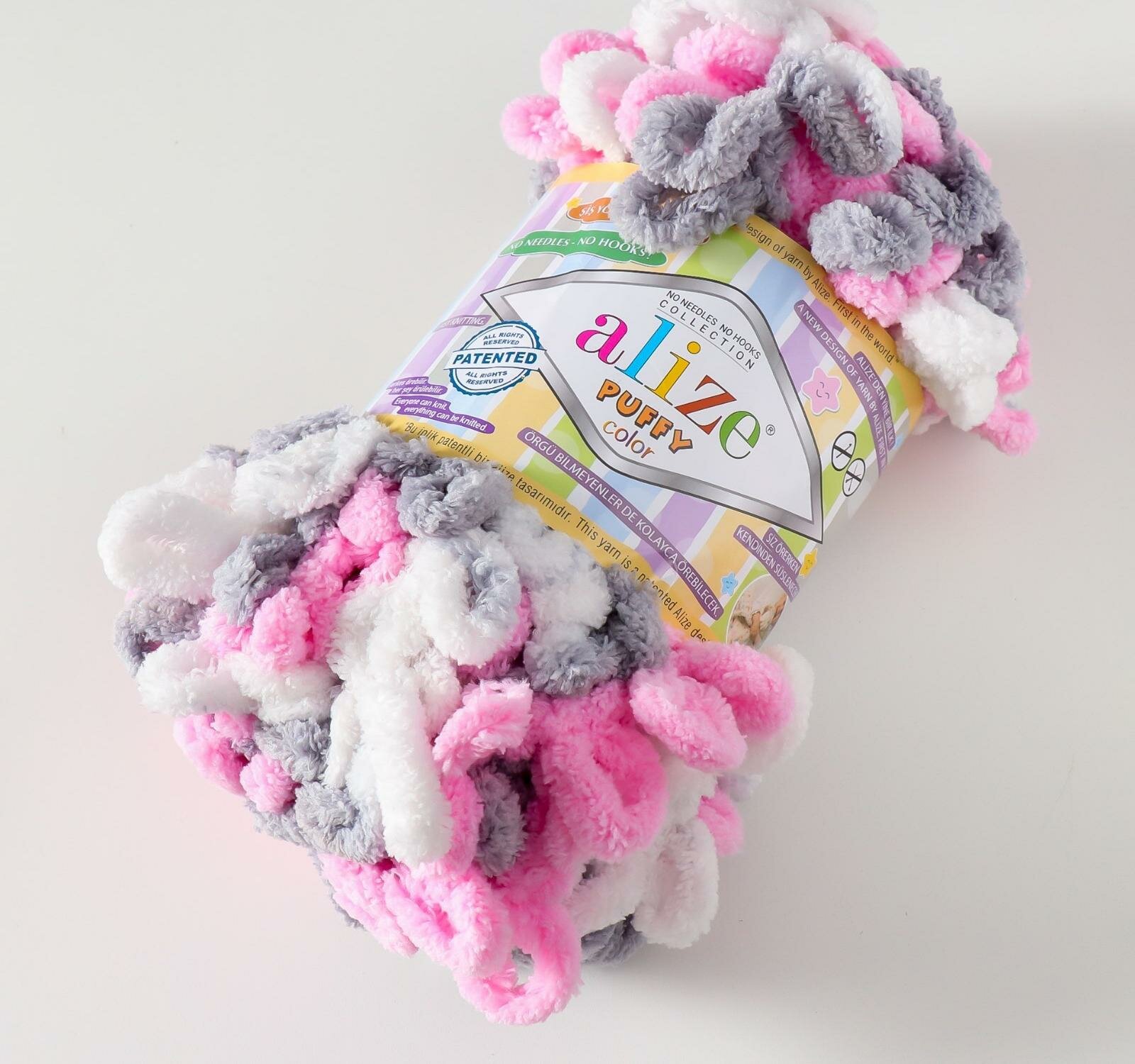 Отзывы на Пряжа 100%микрополиэстер Puffy color ALIZE белый-серый-розовый-сиреневый (6370), 9м±0,6м, 100г