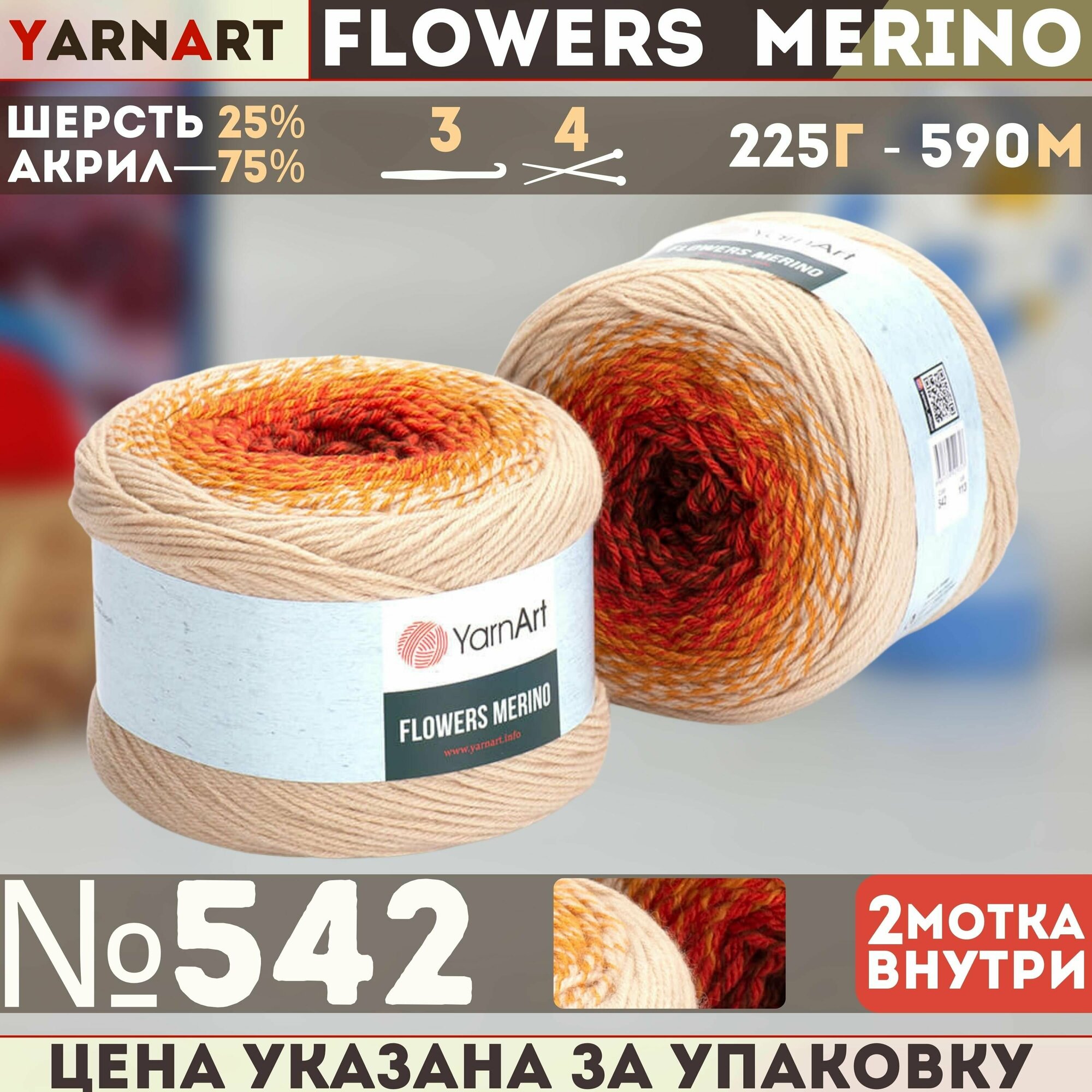 Пряжа для вязания YarnArt 'Flowers Merino' 225г, 590м (25% шерсть, 75% акрил) (542 секционный), 2 мотка