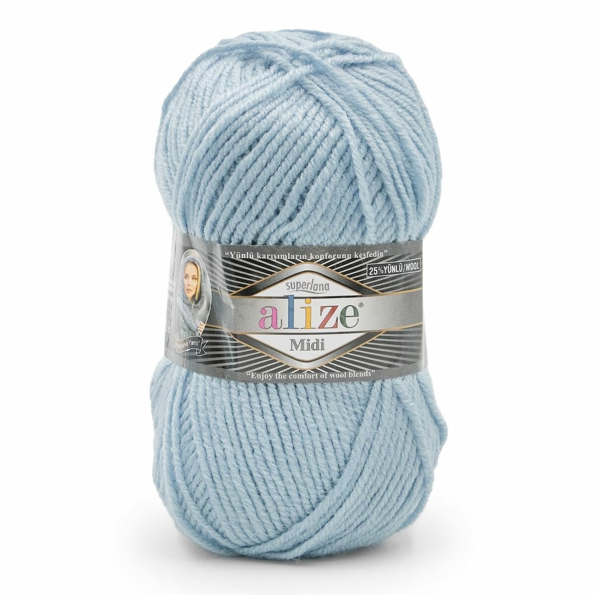 Пряжа ALIZE SUPERLANA MIDI, св. голубой - 480, 25% шерсть, 75% акрил, 5 мотков, 100 г, 170 м. информация: