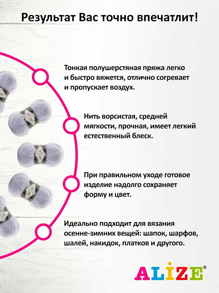Отзывы на Пряжа для вязания ALIZE 'Mohair classic', 100г, 200м (мохер, шерсть, акрил) (224 светло-сиреневый), 5 мотков