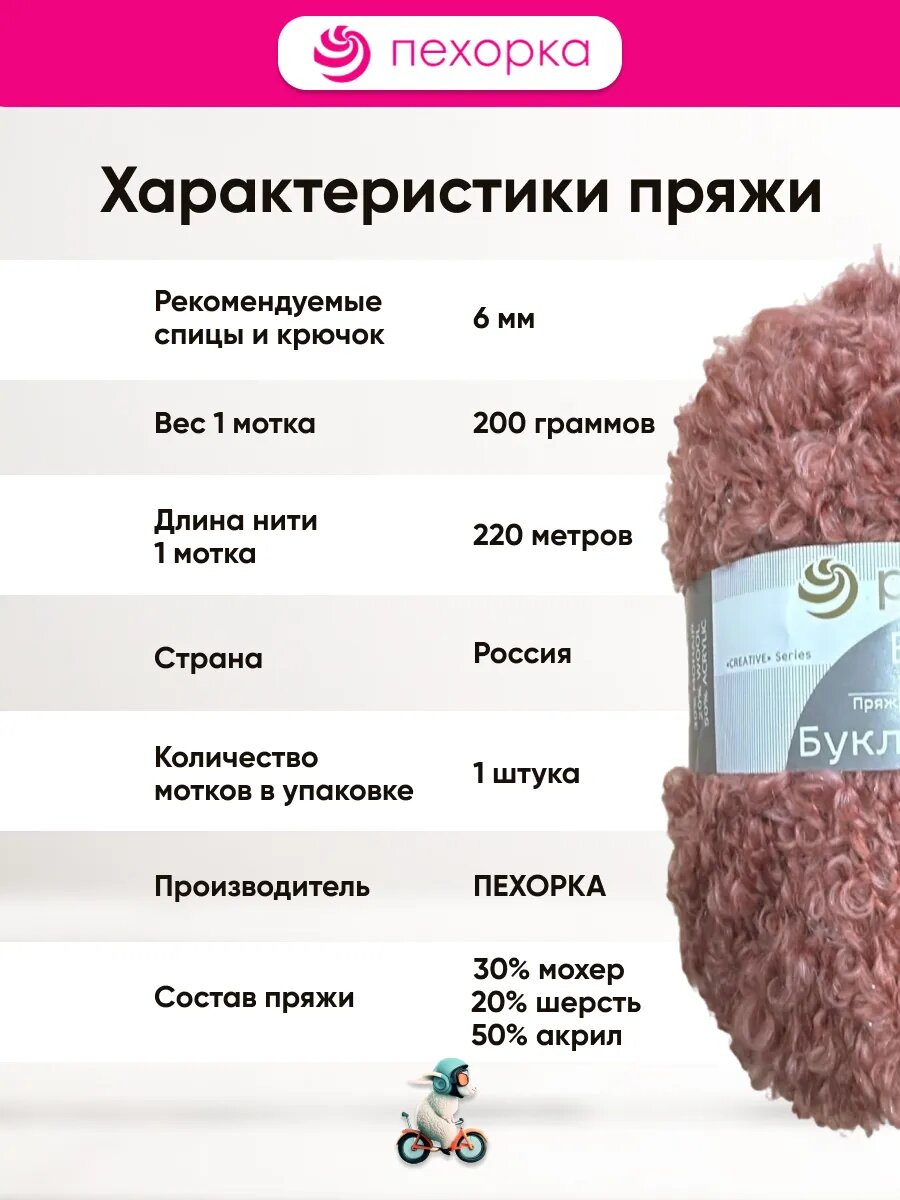 Пряжа Пехорка Буклированная 1 моток 599 Увядшая роза информация: