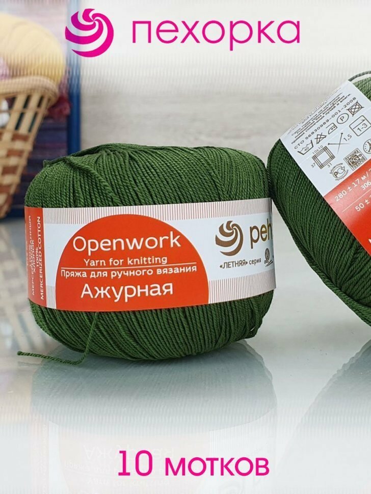 10 цен на Пряжа Пехорка ажурная 13 т. олива (10 мотков)