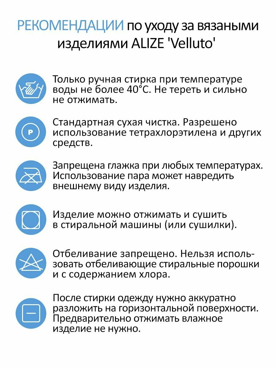 | Комплектация | Один моток пряжи Alize Velluto (Веллюто), надежная герметичная упаковка |