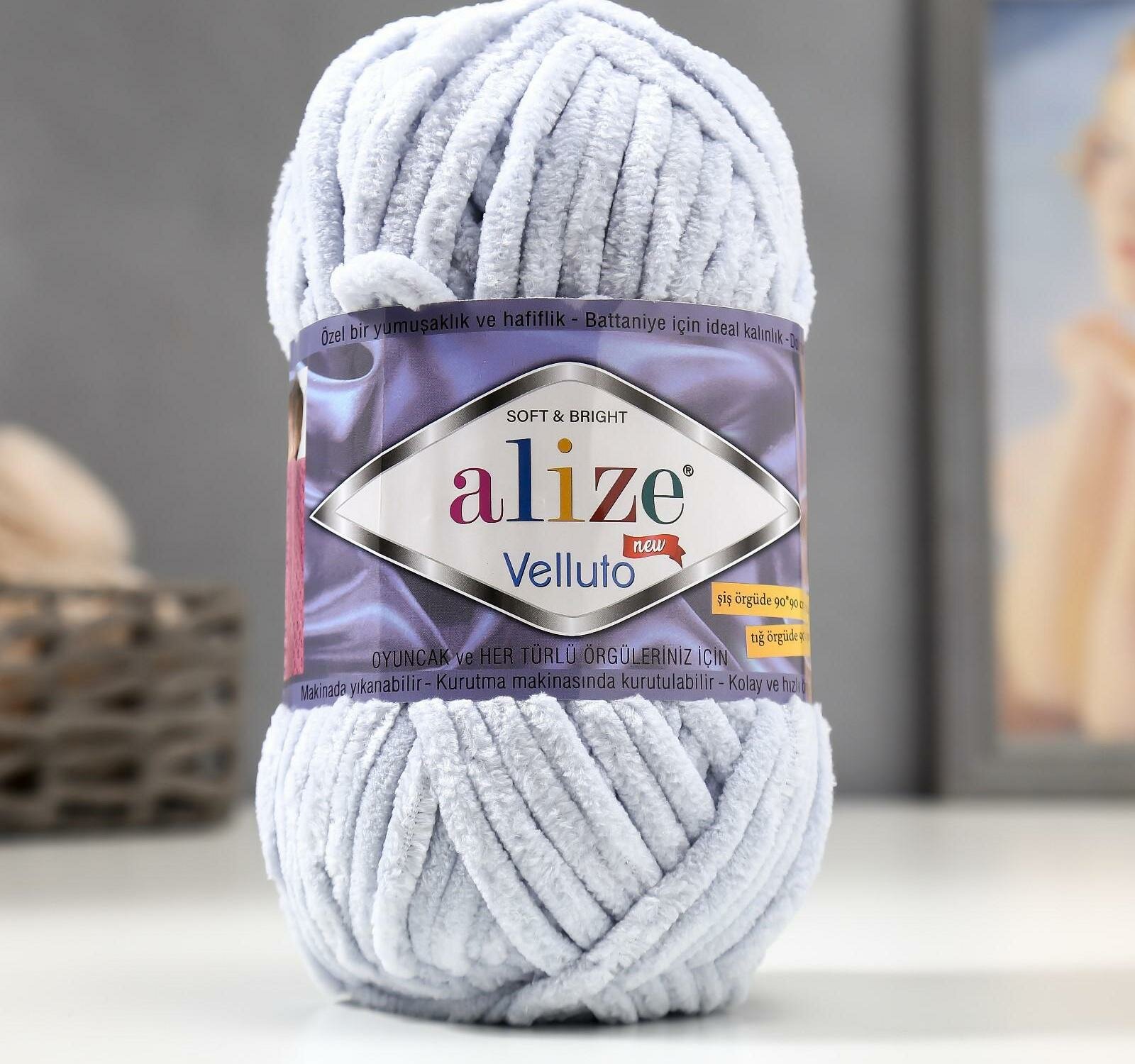 10 цен на Пряжа Alize Velluto (Ализе Веллюто) - 1 моток 416 серый 100% микрополиэстер 68м/100г