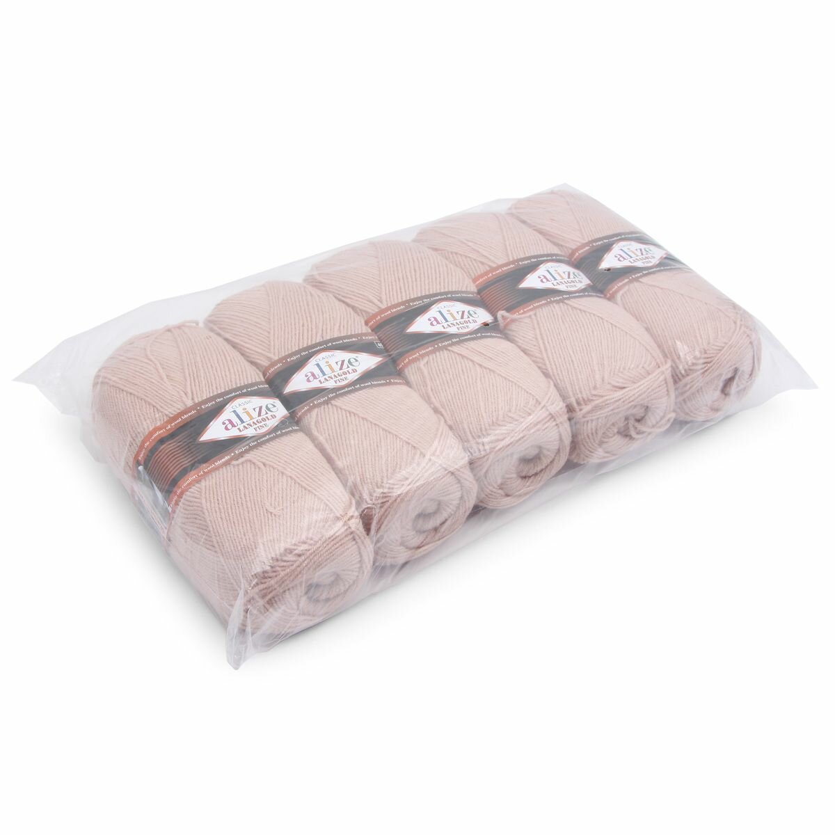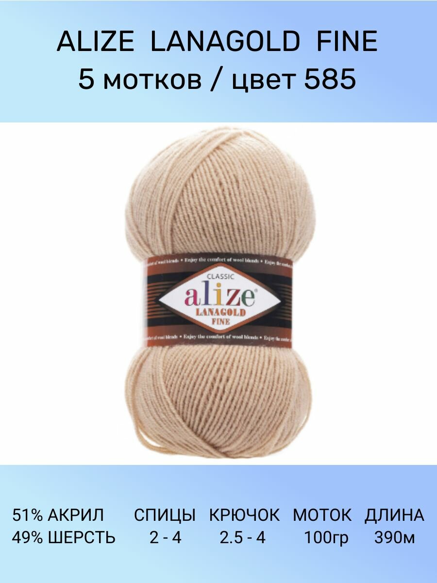Пряжа для вязания ALIZE LANAGOLD FINE: 5 (бежевый), 5 шт 390 м 100 г, 49% шерсть 51% акрил