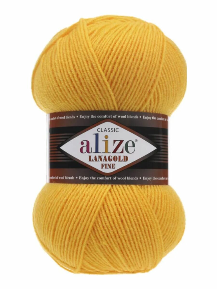 Пряжа Alize Lanagold Fine (Ализе Ланаголд Файн) - 5 мотков, 216 желтый, 49% шерсть, 51% акрил 390м/100г