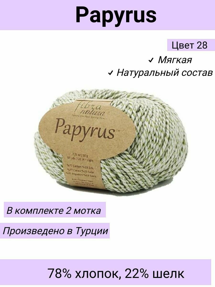Пряжа Fibra Natura Papyrus цвет 229-29 Серо-зеленый / 2 шт 50гр 120м 78% хлопок 22% шелк / Фибра Натура Папирус 650 ₽