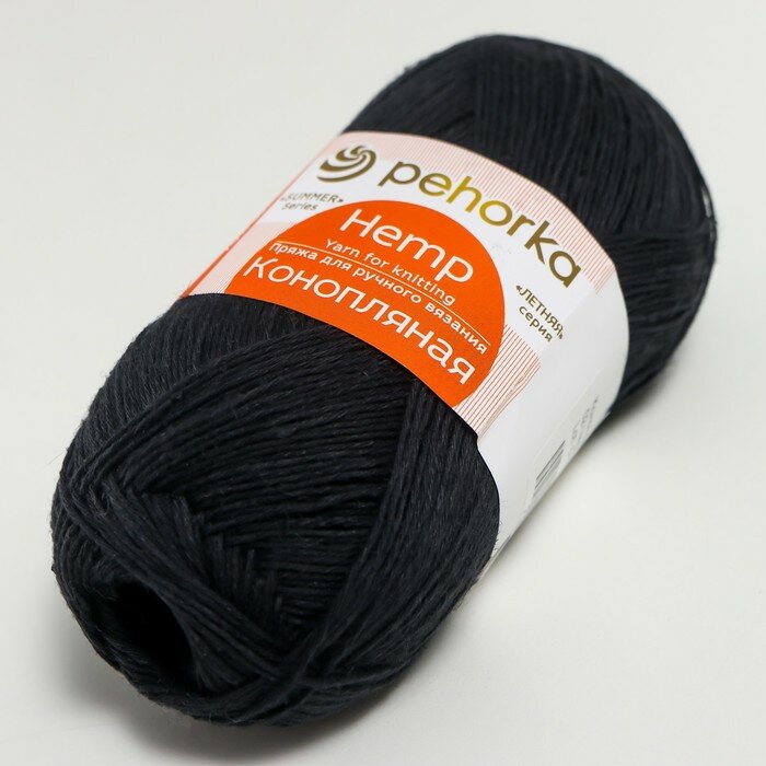 10 цен на Пряжа "Конопляная" 70% хлопок, 30% конопля 280м/50гр (02-Черный)