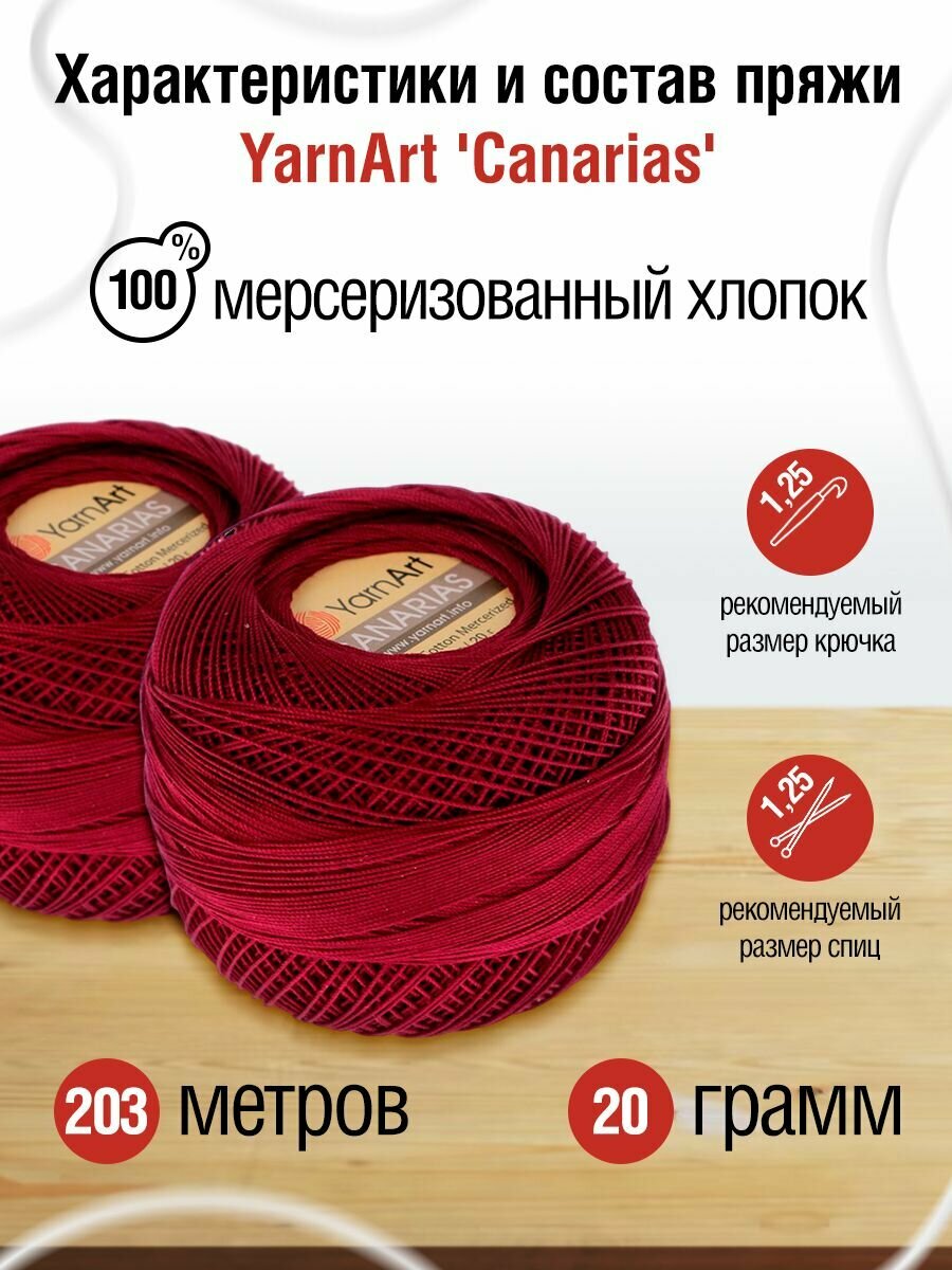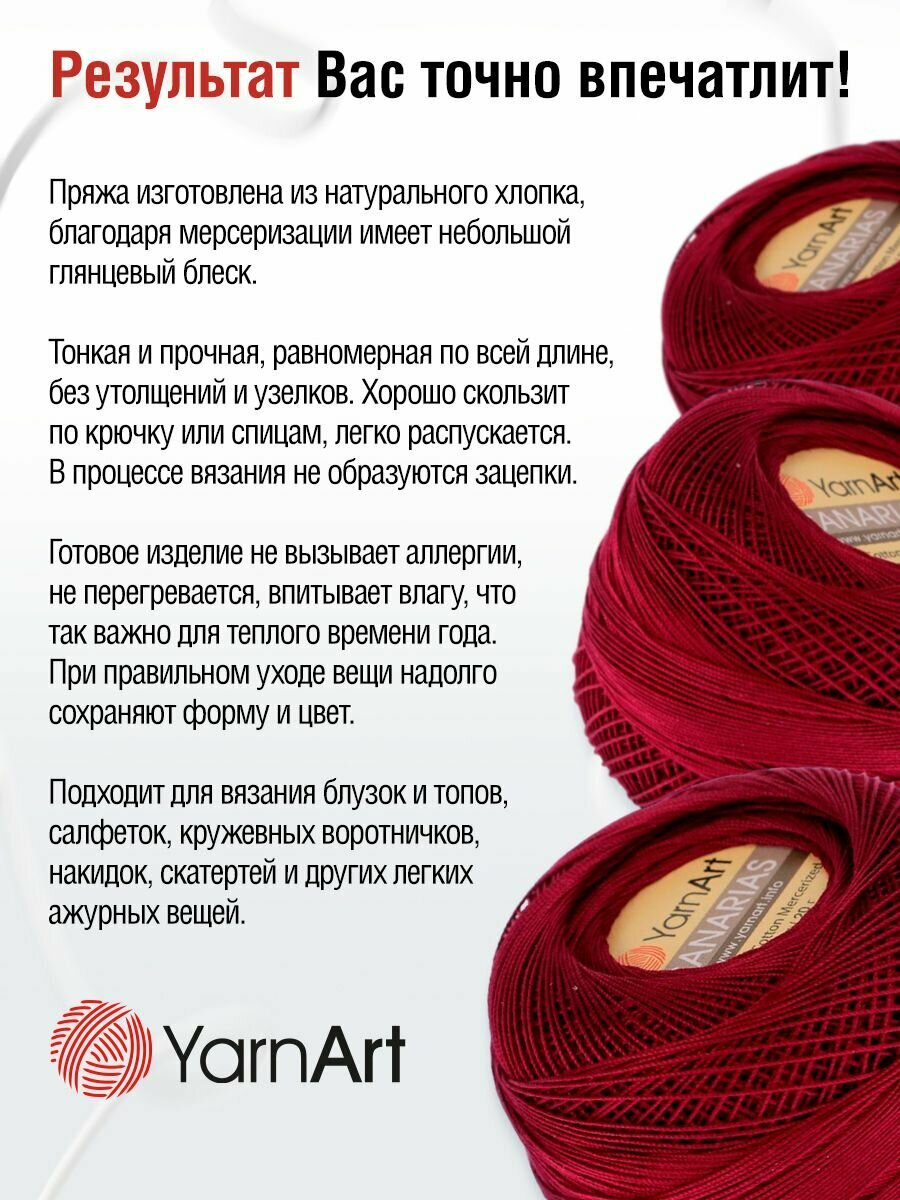 10 цен на Пряжа для вязания YarnArt 'Canarias' 20г, 203м, 100% мерсеризированный хлопок (0112 бордо), 10 мотков