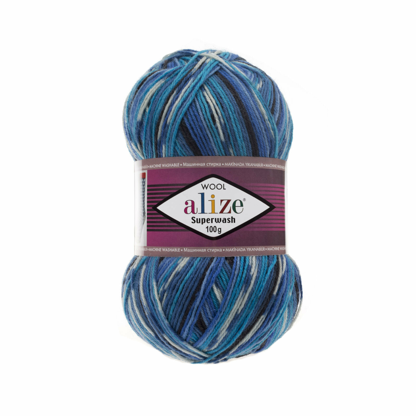 Пряжа Alize Superwash 100 белый-синий-бирюза (4446), 75%шерсть/25%полиамид, 420м, 100г, 1шт