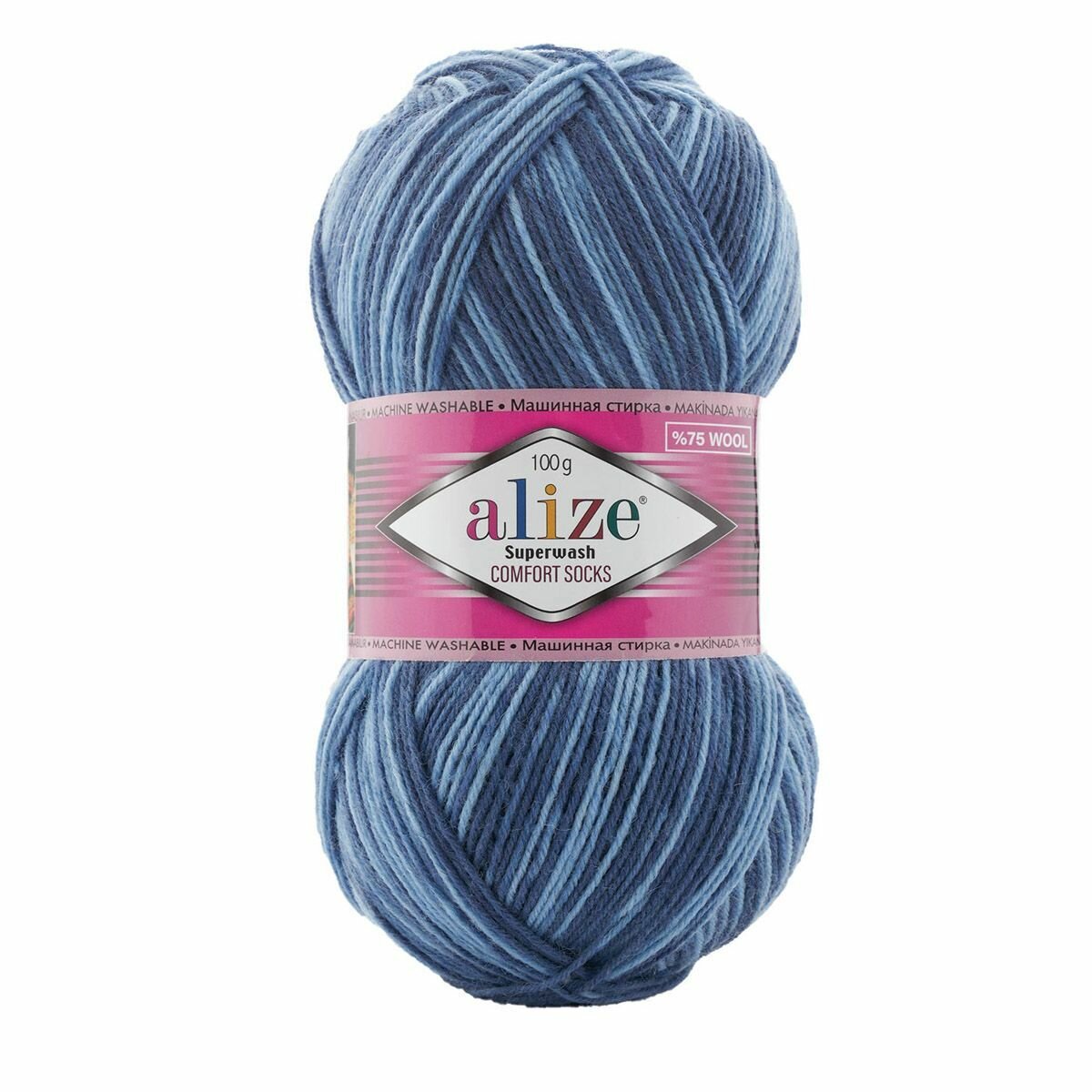Отзывы на Пряжа ALIZE SUPERWASH 100, джинсовый принт - 7677, 75% SW шерсть, 25% полиамид, 5 мотков, 100 г, 420 м.