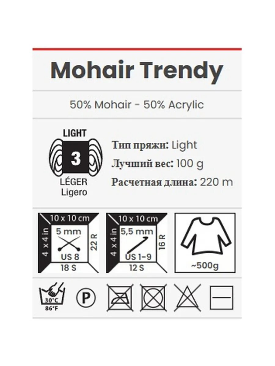 Пряжа Yarnart Mohair Trendy 116 - 1 шт, мохер 538 ₽