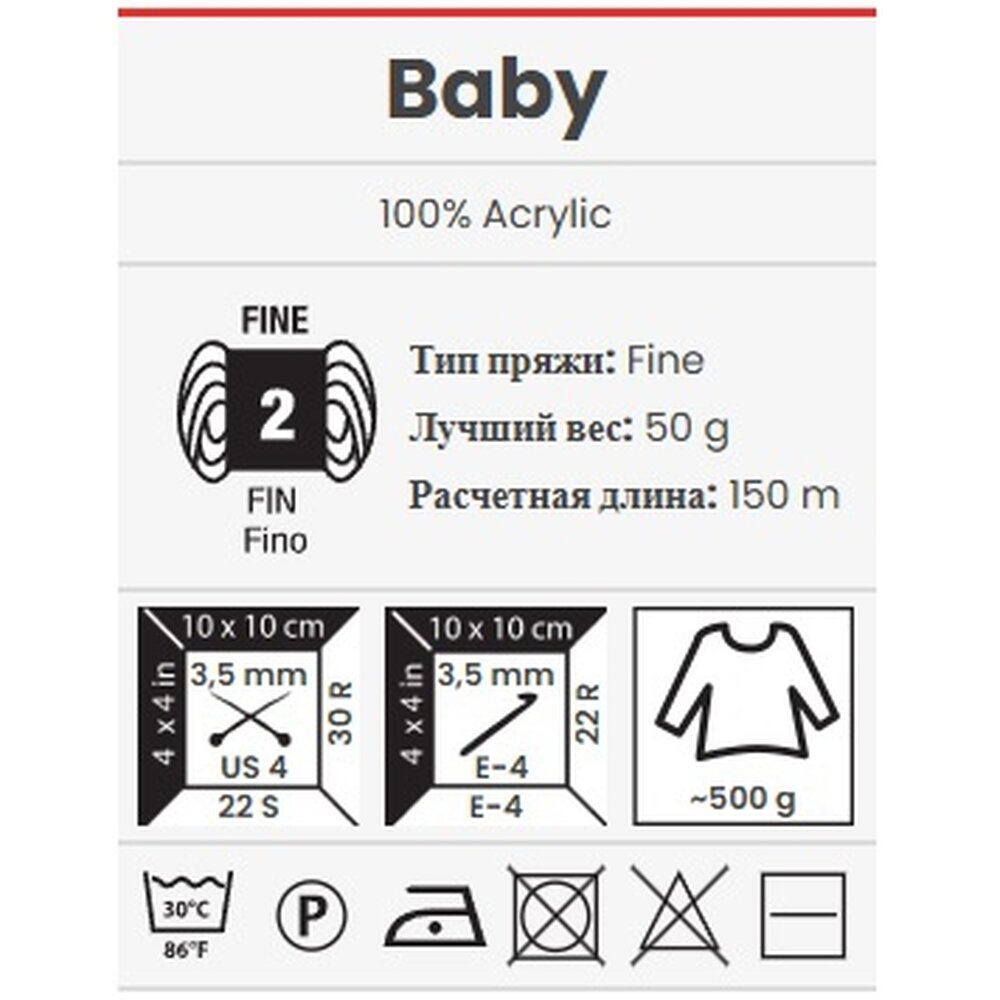 Пряжа Baby YarnArt (501), 50 г, 150м, 100% акрил (2 шт.)