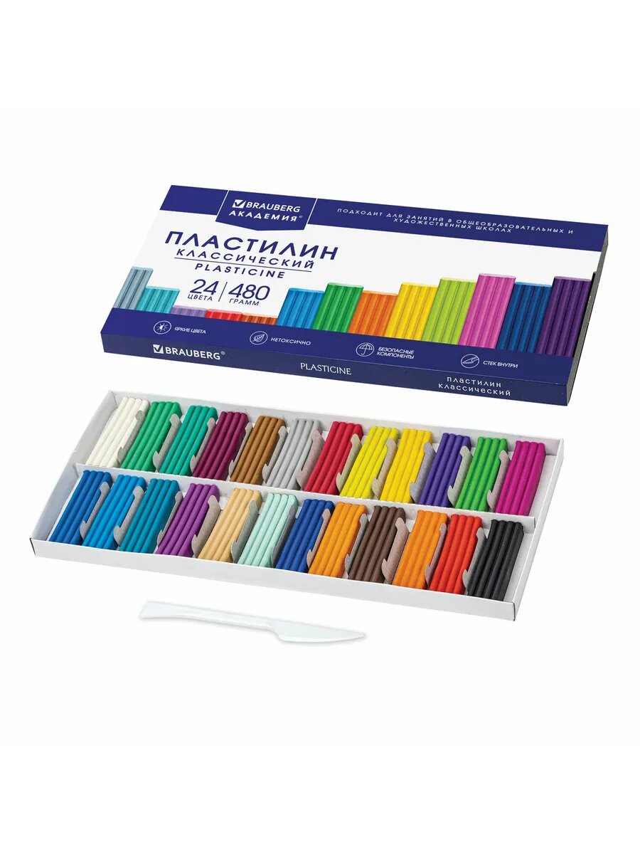 Пластилин Brauberg классический "академия классическая", 24 цвета, 480 г, стек, высшее качество, 106424 400 ₽