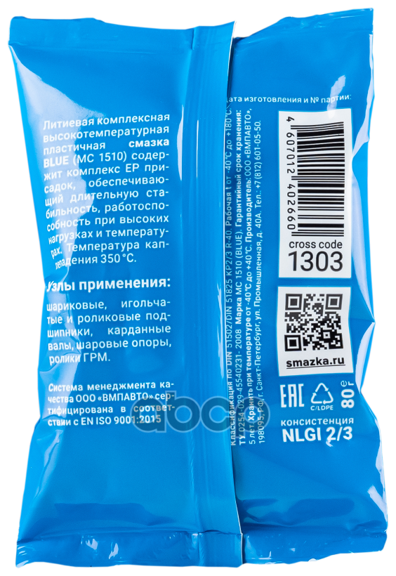 Смазка Вмпавто Мс 1510 Blue Высокотемпературная Комплексная Литиевая 80г Стик-Пакет ВМПАВТО арт. 1303