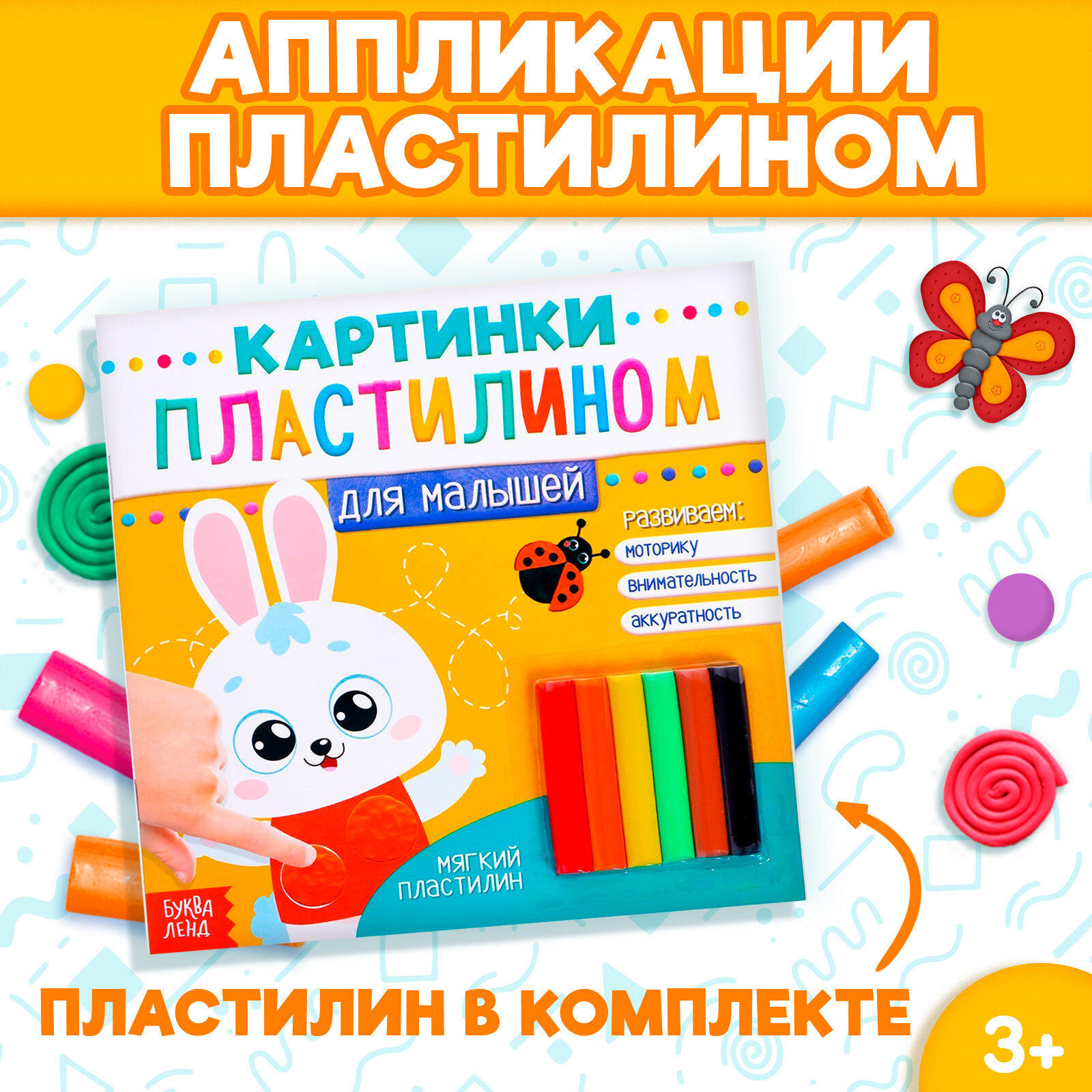 10 цен на Аппликации для детей пластилином "Для малышей. Зайчик", 12 стр, набор для творчества, пластилин в комплекте, Буква-Ленд